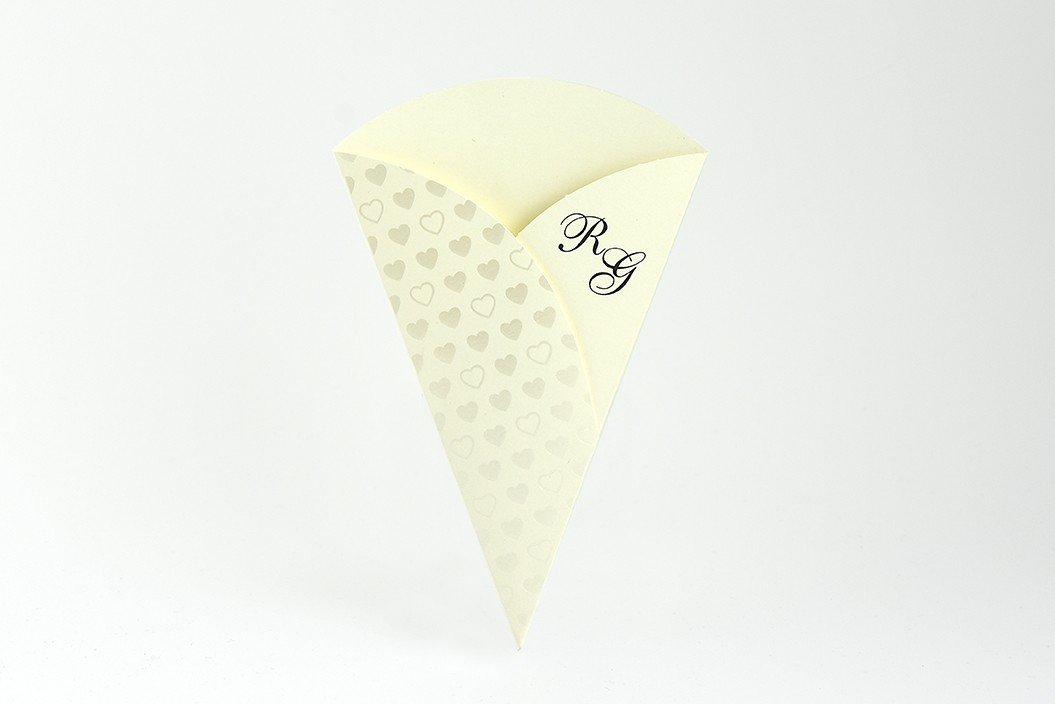 Carta avorio 250 gr/mq - Lamina a caldo perlata - Dimensioni: cm 10 x 15 - Montaggio con piega e linguetta ad incastro