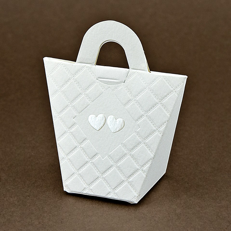 Carta bianca da 250 gr/mq - Lamina a caldo perlata e rilievo - Dimensioni: base: 8 cm - altezza: 9 cm - profondità: 4 cm - Assemblaggio ad incastro