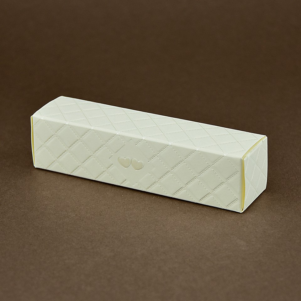 Carta avorio da 250 gr/mq - Lamina a caldo perlata e rilievo - Dimensioni: base: 11 cm - altezza: 3 cm - profondità: 3 cm - Assemblaggio ad incastro