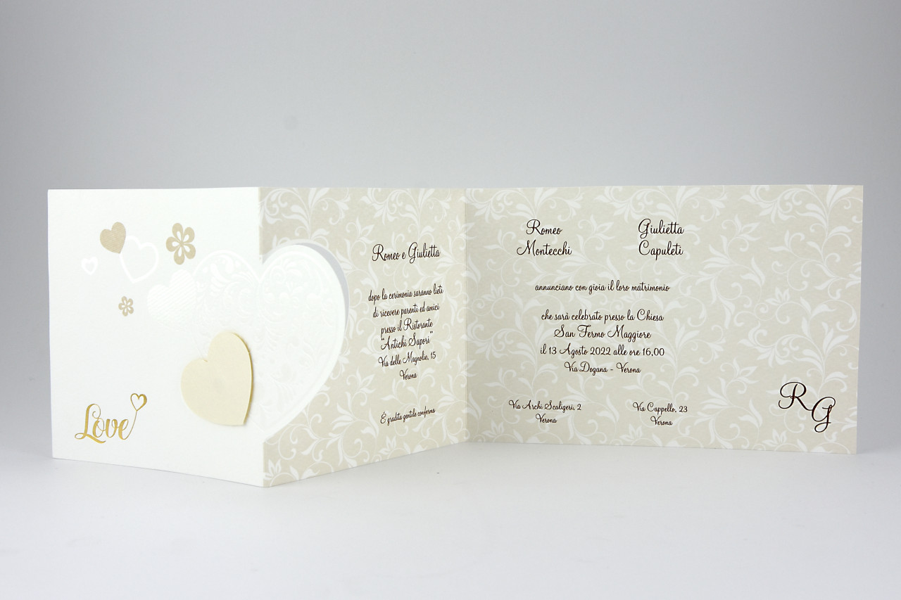 1x busta 1x partecipazione con iniziali 1x invito 2x biglietto da confetti